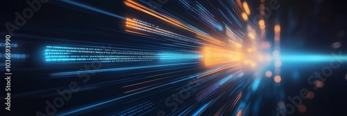 Canvas Print : Abstract tech background, blue and orange lights, blur, data stream, cybersecurity, binary code -