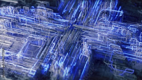 Canvas Print : Abstract technological background from a fiber optic glowing beam spreading in the digital space - da