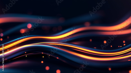 The watermark will not be included on Canvas Print.: Abstract thin neon orange lines on a black background