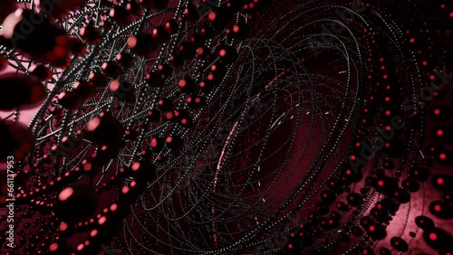 The watermark will not be included on Canvas Print.: Abstract tornado of tangled metal wires and small spheres - design - fast rotating 3d spiral -