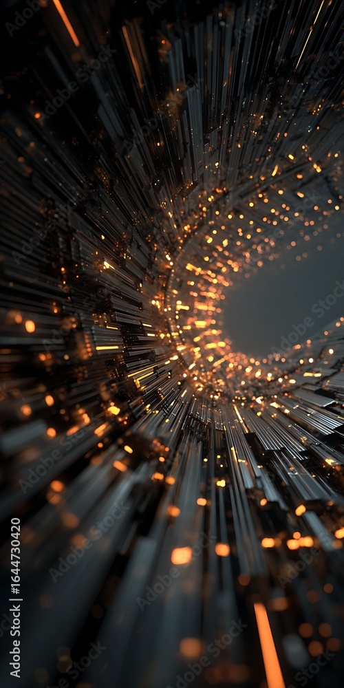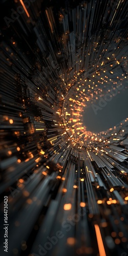 The watermark will not be included on Canvas Print.: Abstract tunnel with bright lights creating a sense of depth and mystery, perfect for backgrounds an