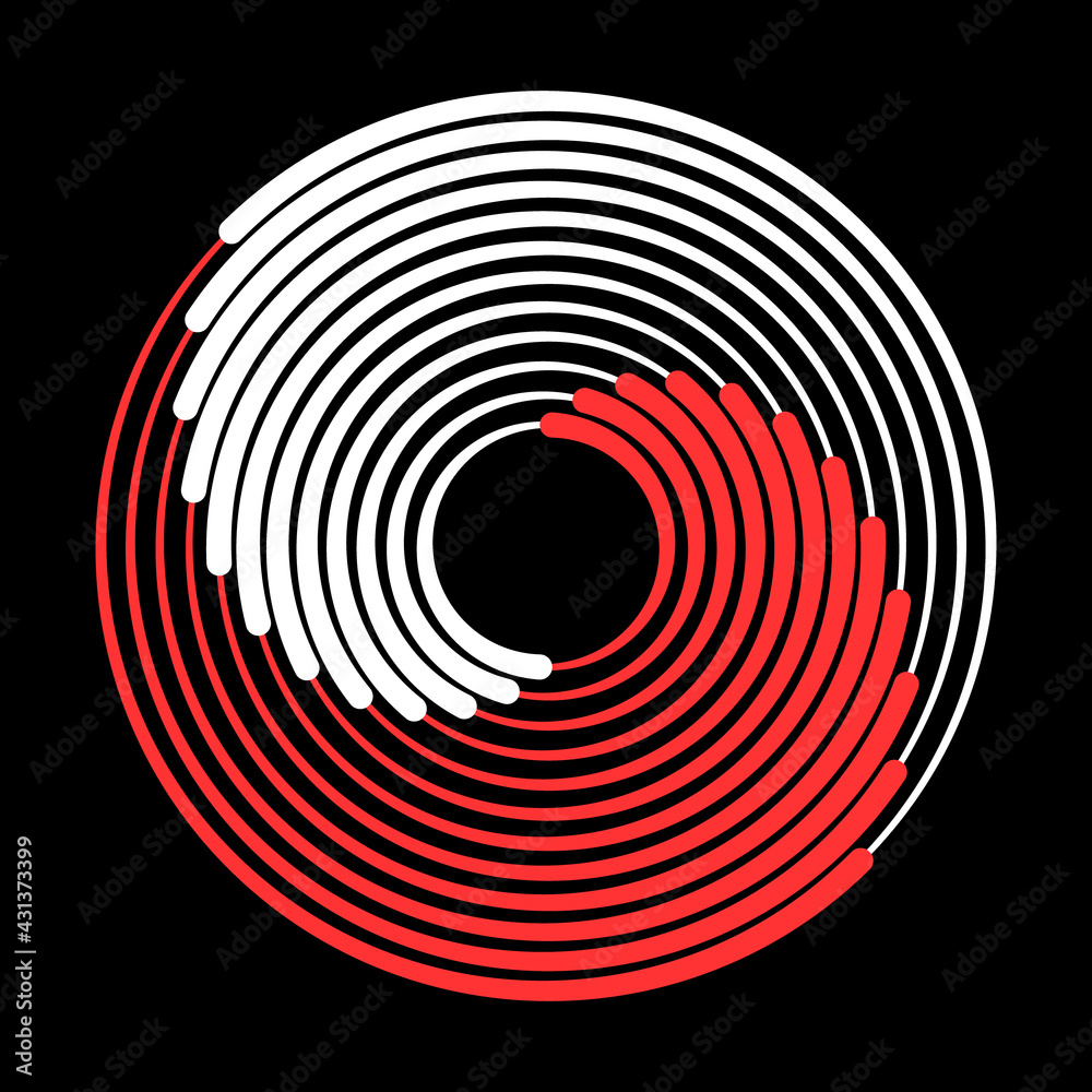 Canvas Print : Abstract vector background with red and white lines - halftone effect - spiral logo or icon - yin and y
