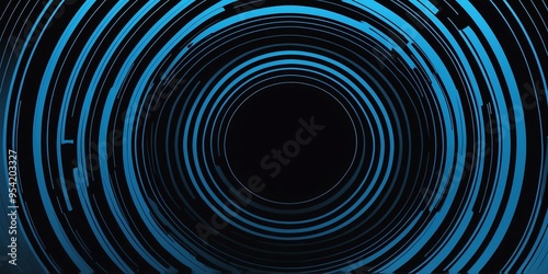 The watermark will not be included on Canvas Print.: Abstract vector concentric circles with blue to black gradient background