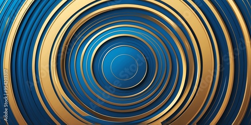 The watermark will not be included on Canvas Print.: Abstract vector concentric circles with blue to gold gradient background