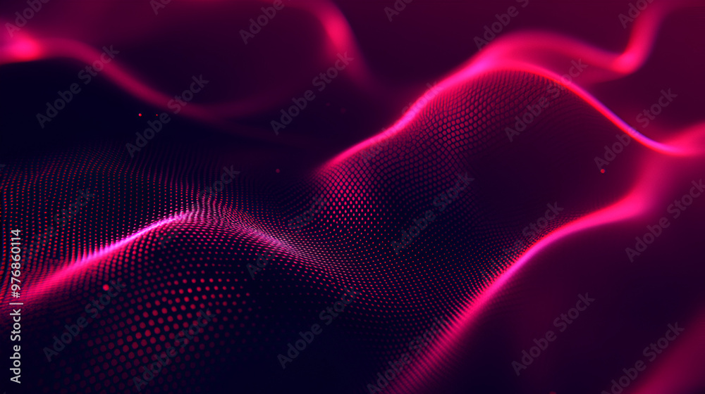 The watermark will not be included on Canvas Print.: Abstract waves of vibrant pink light creating a dynamic, flowing pattern in a dark setting during ni