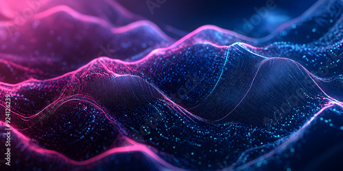Canvas Prints abstract wavy background of many lines and dots with a blue-violet gradient. waves. neon colors
