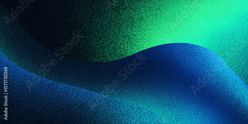 Canvas Print : Abstract wavy background with green blue gradient - black - saturated colors - particles - dark style - c