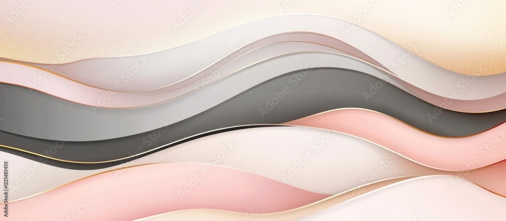 The watermark will not be included on Canvas Print.: Abstract wavy layers background in light pink gray gold and white gradient ideal for text overlay an