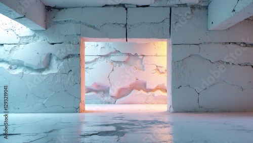 The watermark will not be included on Canvas Print.: Abstract white concrete wall texture with colorful light accents suitable for artistic background an