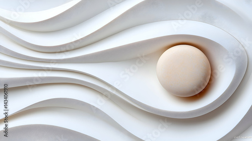Canvas Print : Abstract white textured surface with radiating patterns and a pale yellow sphere