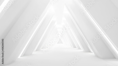 The watermark will not be included on Canvas Print.: Abstract white triangular hallway with a glowing light at the end -