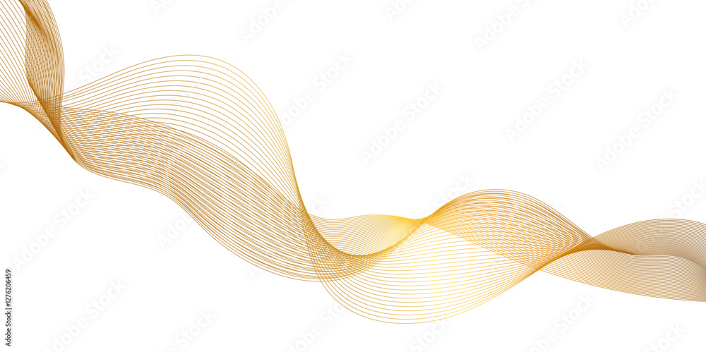 Canvas Print : Abstract yellow gold lines flowing across a white background in a smooth, wave-like design, abstract