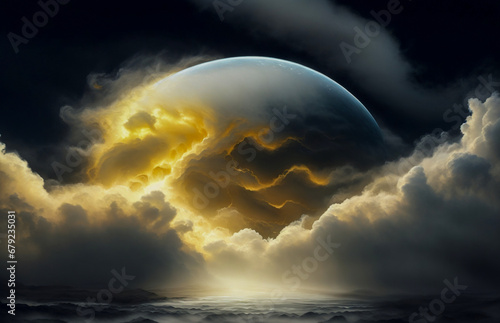 The watermark will not be included on Canvas Print.: Abstraction is something that is not really an illusion, the sky is gold, a dark background