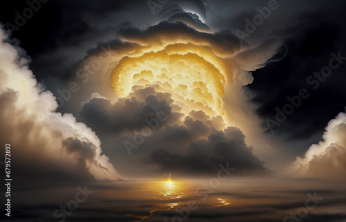 The watermark will not be included on Canvas Print.: Abstraction sky fog sunset with golden iridescence