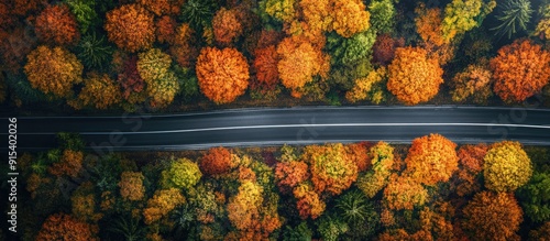 Canvas Prints aerial perspective of a highway surrounded by autumn foliage in the forest. with copy space image. p