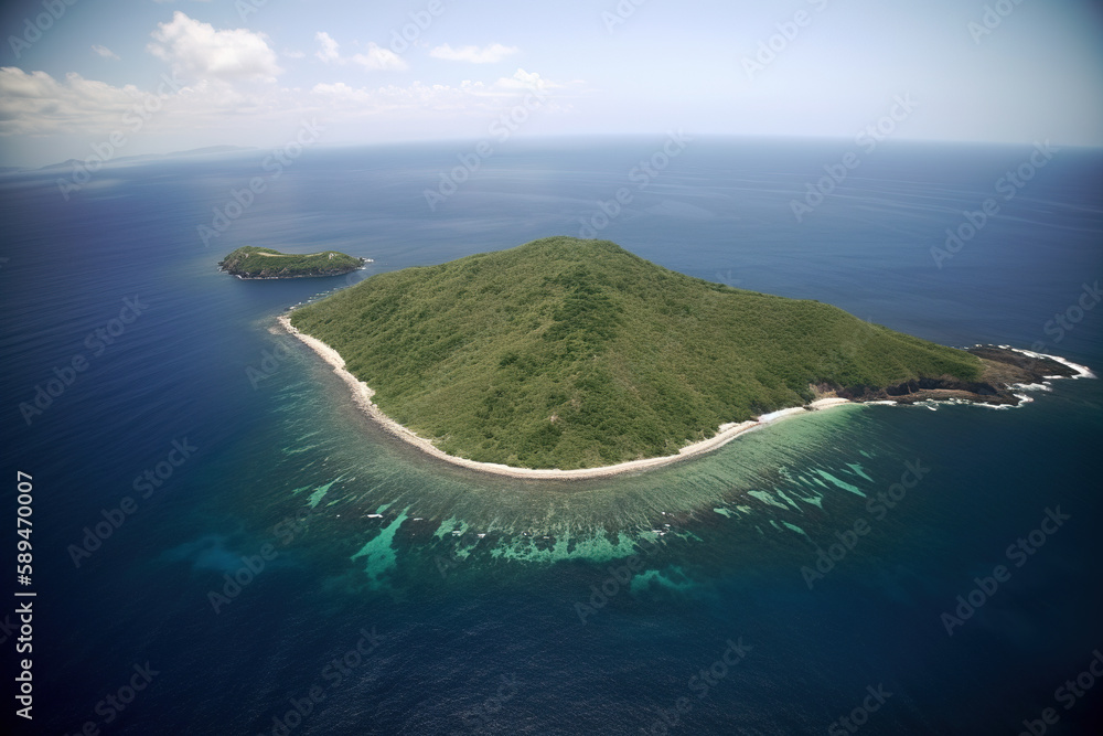 The watermark will not be included on Canvas Print.: Aerial view of a small island in the middle of the ocean - created with generative ai technology