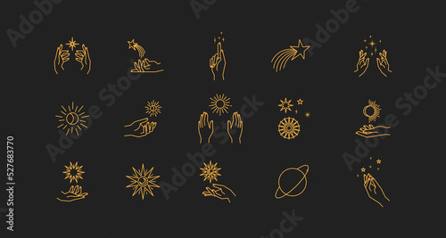 Canvas Prints aesthetic astral hands. collection of cosmic and celestial elements with sun, moon and stars. isolat