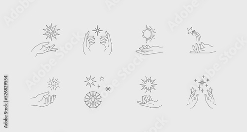 Canvas Prints aesthetic astral hands. collection of cosmic and celestial elements with sun, moon and stars. isolat