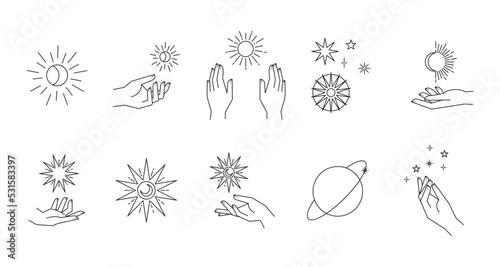 Canvas Prints aesthetic astral hands. collection of cosmic and celestial elements with sun, moon and stars. isolat