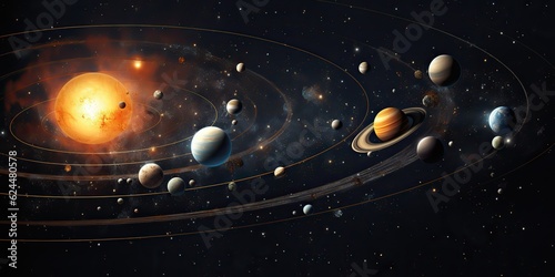 The watermark will not be included on Canvas Print.: Ai generated - ai generative - solar system universe galaxy space planets poster background decoration