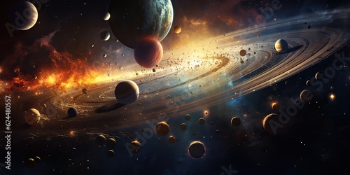The watermark will not be included on Canvas Print.: Ai generated - ai generative - solar system universe galaxy space planets poster background decoration