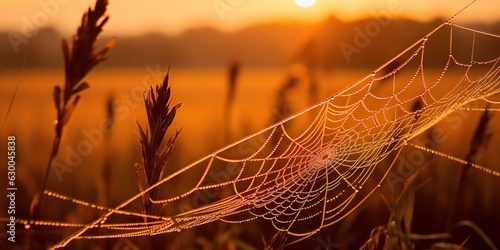 The watermark will not be included on Canvas Print.: Ai generated - ai generative - sunshine spoderweb spider web at field meadow hay grass - nature outdoor