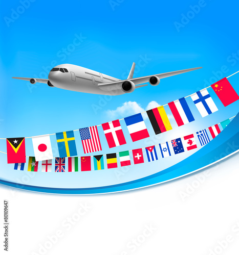 Canvas Prints airplane travel background with flags of different countries - Canvas Prints Canvas Prints airplane travel background with flags of different countries - Canvas Prints