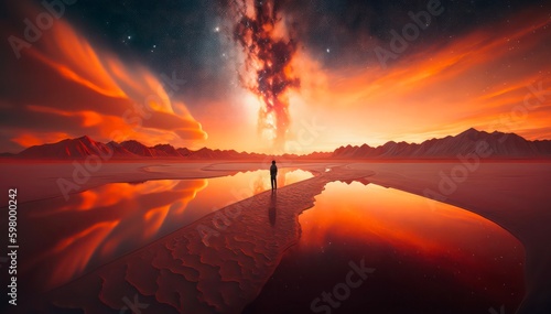 The watermark will not be included on Canvas Print.: Amazing landscape as background design - galaxies, nebula and stars in space - generative ai -