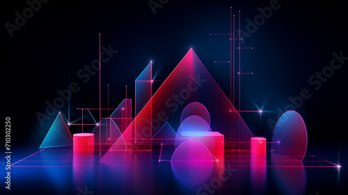 The watermark will not be included on Canvas Print.: Amazing set of glowing geometric shapes against an abstract
