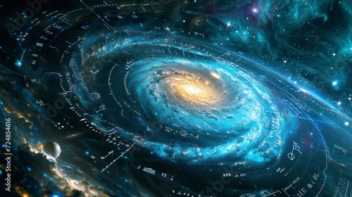 The watermark will not be included on Canvas Print.: Amazing spiral galaxy with physical and mathematical signs and equations