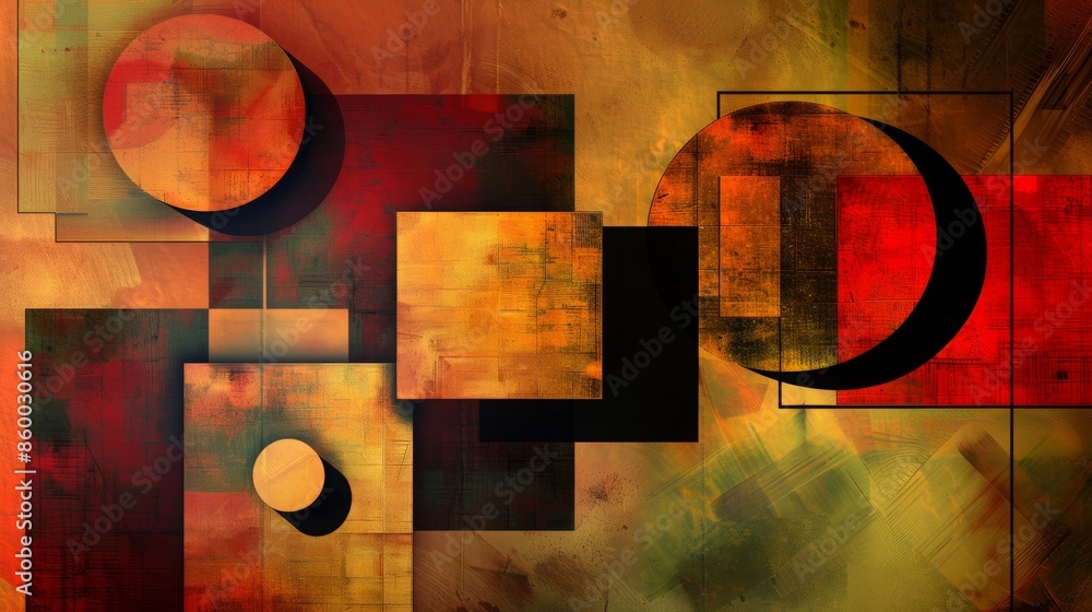 Canvas Prints an abstract composition of geometric shapes, featuring 3d blocks and circles intersecting with squar - Canvas Prints Canvas Prints an abstract composition of geometric shapes, featuring 3d blocks and circles intersecting with squar - Canvas Prints