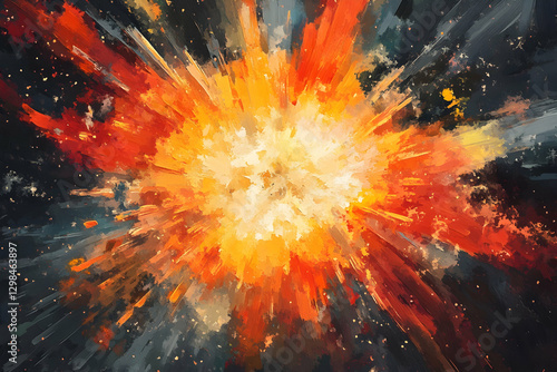 Canvas Print : An abstract digital painting of an explosion, with vibrant colors and fluid shapes creating dynamic