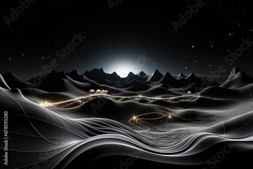 The watermark will not be included on Canvas Print.: An abstract sci-fi wallpaper against a black background, creating a visually captivating composition
