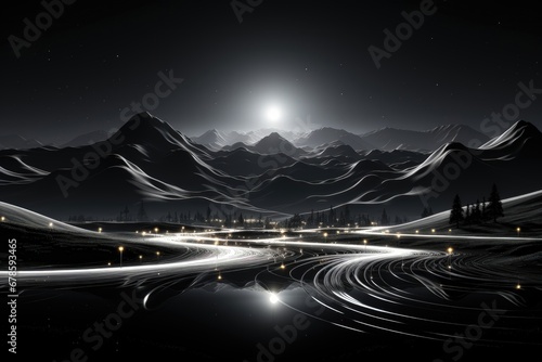 The watermark will not be included on Canvas Print.: An abstract sci-fi wallpaper against a black background, creating a visually captivating composition