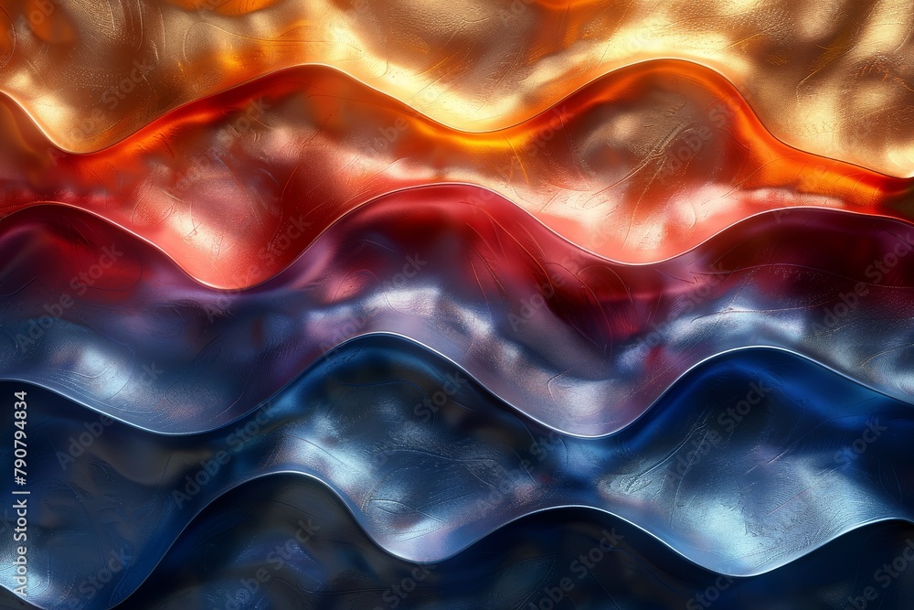 The watermark will not be included on Canvas Print.: An artistic representation with vivid waves in orange, red, and blue tones, creating a dynamic and e