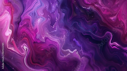 The watermark will not be included on Canvas Print.: An ethereal fluid art abstract background showcasing fluid patterns in deep purples, magentas, and l