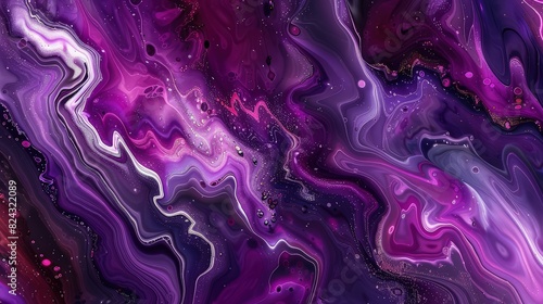 The watermark will not be included on Canvas Print.: An ethereal fluid art abstract background showcasing fluid patterns in deep purples, magentas, and l