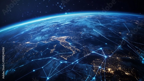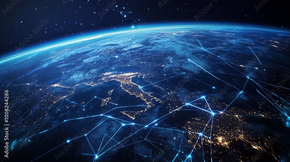 The watermark will not be included on Canvas Print.: An illustration representing communication technology for internet business, showcasing a global net