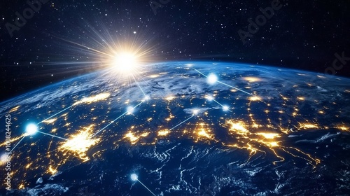 The watermark will not be included on Canvas Print.: An illustration representing communication technology for internet business, showcasing a global net