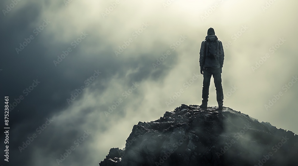 The watermark will not be included on Canvas Print.: An individual standing tall against a backdrop of adversity, showcasing the message of never giving