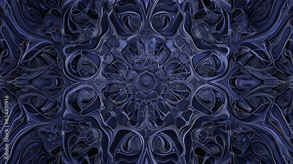 The watermark will not be included on Canvas Print.: An intricate monochromatic abstract background with symmetrical patterns and flowing lines in differ