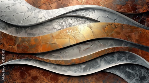 The watermark will not be included on Canvas Print.: An intricate textured abstract background with layered metallic textures in copper, silver, and gold