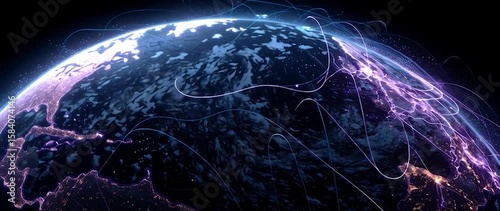 Canvas Prints anamorphic video ai neural networks covering planet illustration. global digital grid growing over e