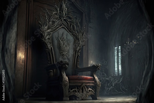 The watermark will not be included on Canvas Print.: Ancient dark throne with ornament in old dark castle, created with generative ai