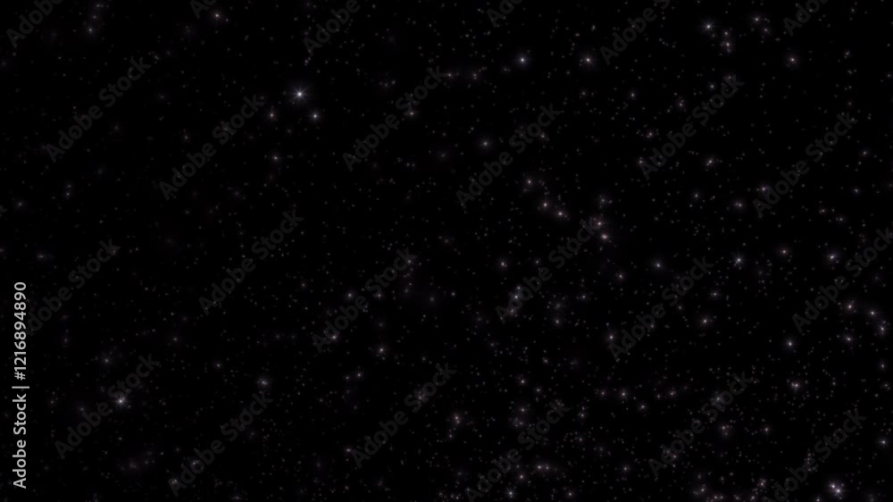 The watermark will not be included on Canvas Print.: Animation loop glow white star bokah bubble particles flow up on black abstract background