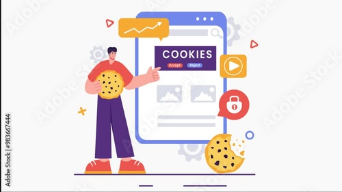 Canvas Print : Animation of internet cookies technology vector illustration featuring the tracking of cookie record