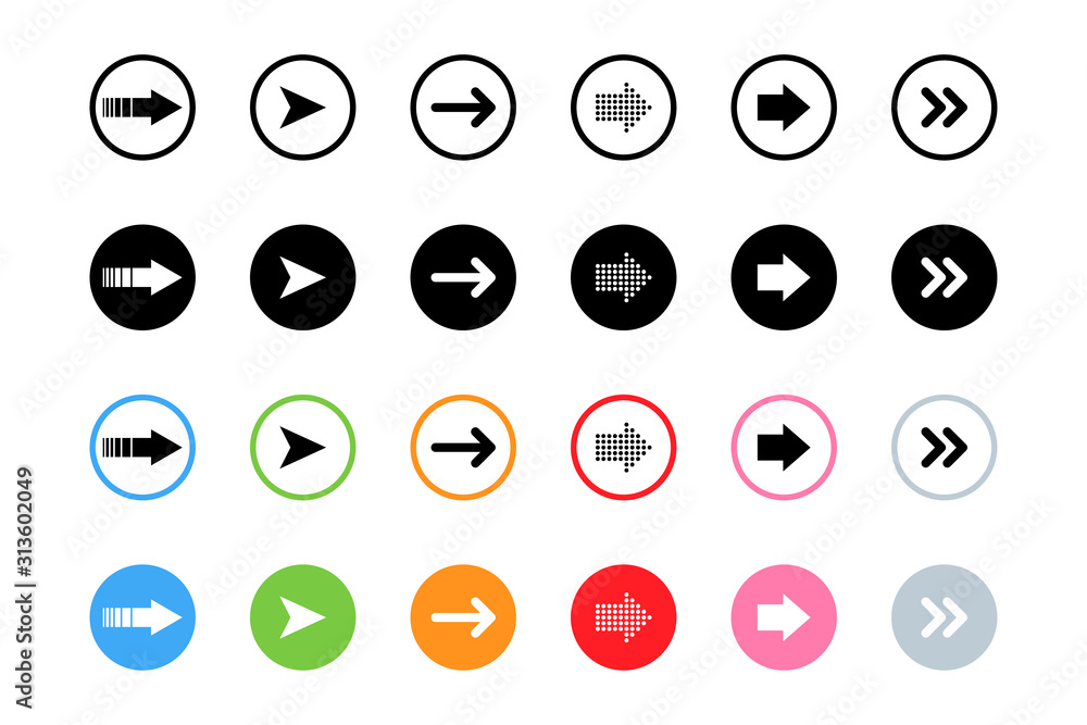 The watermark will not be included on Canvas Print.: Arrows black and white color in colorful circles - big set of arrows in modern simple flat design - ar