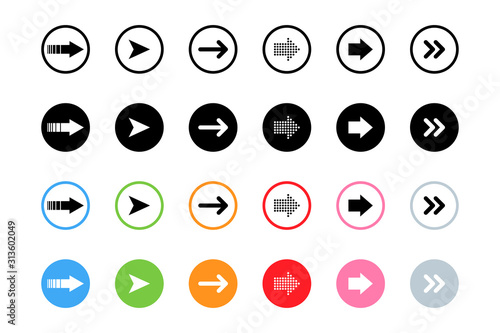 Canvas Print : Arrows black and white color in colorful circles - big set of arrows in modern simple flat design - ar