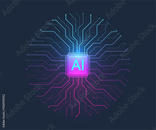 Canvas Prints artificial intelligence icon, sign, logo in the circuit line style. ai processor vector icon flat de