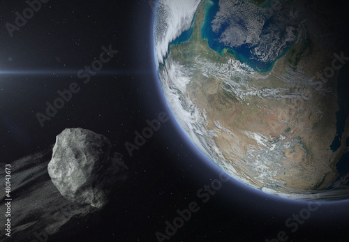 Canvas Print : Asteroid, meteorite or comet and earth - elements of this image furnished by nasa -